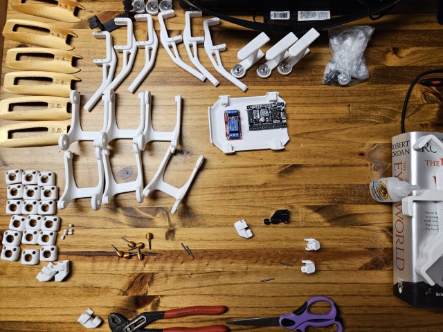 after a month and a half of printing, (a few days in actual print time, but you know, spare time) i was able to start rough fitting motors, screwing parts together and It was really starting to look like i was building a robot.