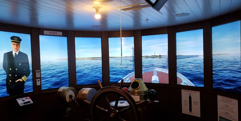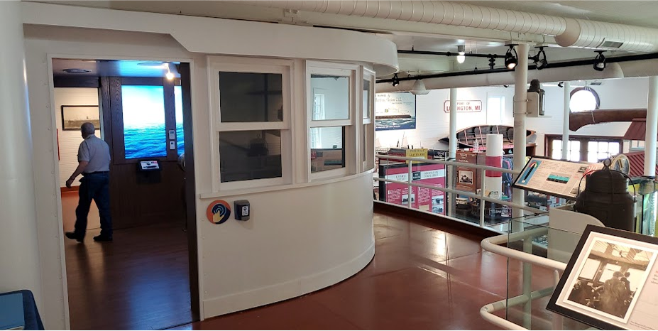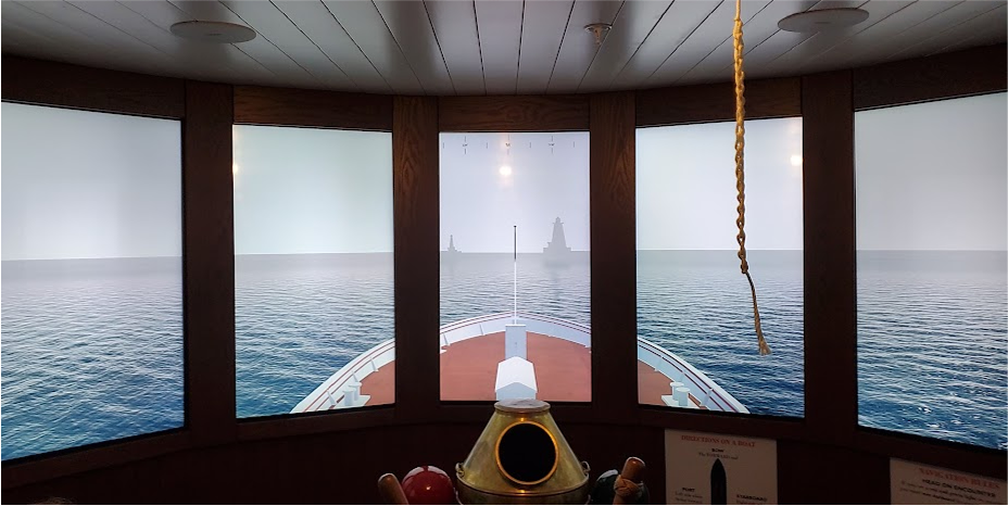 I worked on this Museum Exhibit with Bluewater Technologies for the Port of Ludington Maritime Museum in Ludington, Michigan. This has custom controllers with a physical ship wheel and 9 screens that acted as your view from the wheelhouse of a ferry ship leaving and entering the Port of Ludington.